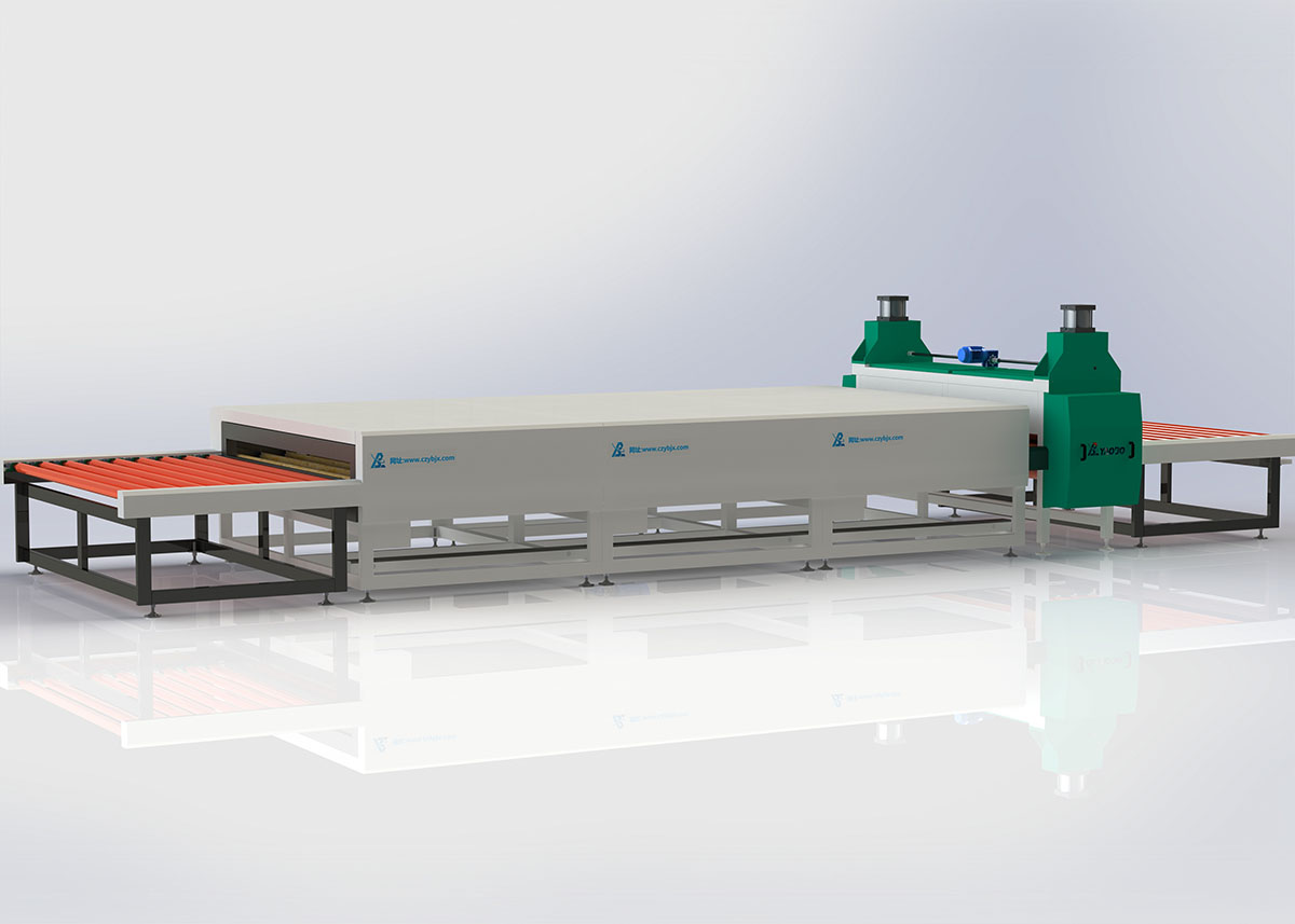 玻璃夾膠機(jī)主要分為平板玻璃夾膠機(jī)和平彎兩用夾膠機(jī)主要工作原理:玻璃與PVB相疊在一起并進(jìn)入加熱區(qū)內(nèi),通過紅外燈管加熱,將玻璃表面溫度加熱到58-65℃(具體溫度根據(jù)不同廠家不同材質(zhì)決定),再通過輥壓機(jī)的擠壓,至此,實(shí)際上所有的氣體已被擠壓出來。玻璃表面朦朧透明狀。技術(shù)參數(shù):(1)較大玻璃寬度:2000mm~3000mm(根據(jù)不同產(chǎn)品型號(hào)決定)  (2)較小玻璃尺寸:500mm*500mm(3)玻璃加工厚度:4~80mm(4)工作面高度:880±20mm(5)輸送速度:1~5m/min(6)總功率:112kw~130kw(7)電源:380~415v,50~60hz(根據(jù)用戶當(dāng)?shù)氐碾妷汉皖l率決定)(8)氣源:氣壓5~8ba,流量4.5~5L/min(9)速度條件方式:變頻調(diào)速(10)弧形玻璃較大弧度:200mm(平彎兩用輥壓機(jī))結(jié)構(gòu)特點(diǎn):(1)加熱區(qū)采用無縫鋼管纏繞耐高溫、耐磨損的鋼
